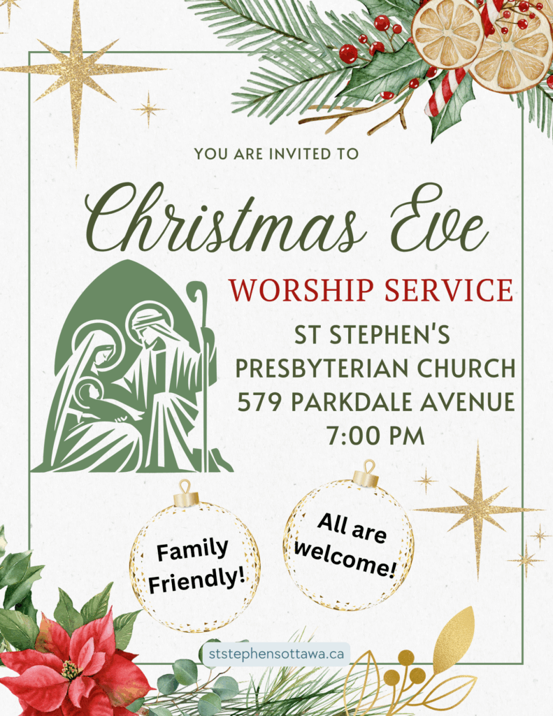 Welcome to St. Stephen’s Presbyterian Church, Ottawa. We are currently worshipping on Sundays both online and in person. Please see below for more details.