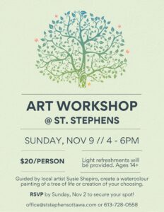 Guided by local artist Susie Shapiro, create a watercolour painting of a tree of life or creation of your choosing.